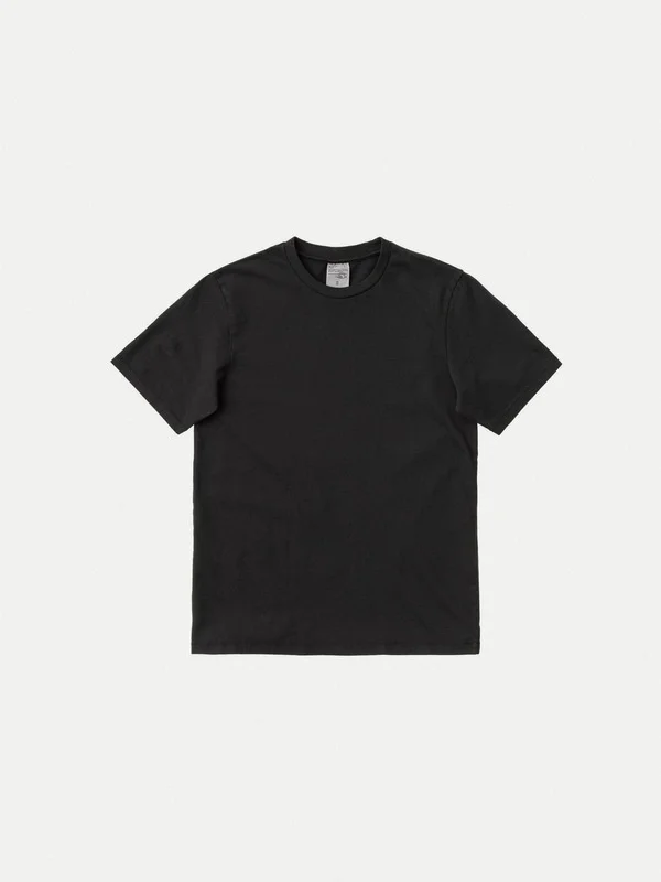 Regular fit crew neck tee in organic cotton with a small NJ embroidery on the left sleeve. Details - Organic cotton - NJ embroidery - Regular fit 100% Cotton Made in PT Solid crew neck tee in clean, crisp organic cotton jersey with a dry hand. The beautiful faded shade on the black colorway results from a pigment dye and a garment stone wash. The color will continue to fade with time as you wear and wash it. We've placed a small NJ embroidery on the left sleeve. It's red on the off-white colorway and tonal on the black.