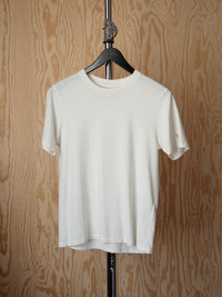 Regular fit crew neck tee in organic cotton with a small NJ embroidery on the left sleeve. Details - Organic cotton - NJ embroidery - Regular fit 100% Cotton Made in PT Solid crew neck tee in clean, crisp organic cotton jersey with a dry hand. The beautiful faded shade on the black colorway results from a pigment dye and a garment stone wash. The color will continue to fade with time as you wear and wash it. We've placed a small NJ embroidery on the left sleeve. It's red on the off-white colorway and tonal on the black.