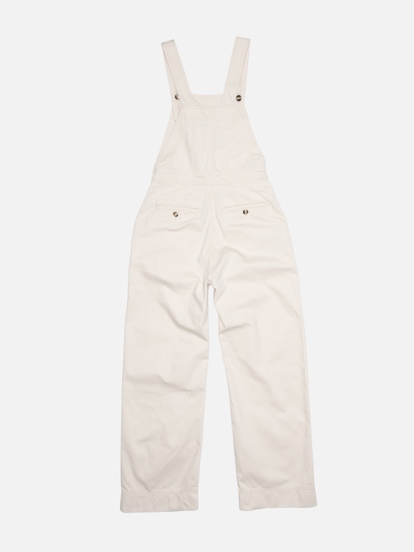 Details - Organic cotton - Rigid twill - Matching thread at seams - Turtoise button - Regular fit - High waist - Wide leg - Wide leg opening - Fixed inseam length of 30 Inches / 76,2 cm 100% Cotton Made in TN Sailor dungarees with a high waist and wide leg, expertly crafted from one of our finest twills. Judy's construction is clean and simplistic, while the fit is highly refined, featuring a fitted waist that seamlessly transitions into a wide leg. Crafted from robust ecru twill, treated with a gentle brushing, these pants possess both body and an exceptionally smooth hand. Pair Suki with Bibbi for the complete look.