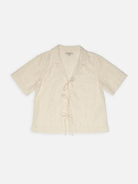 Tie-front camp collar shirt crafted in fabric with short fringes intertwined in the weave, which gives a very interesting 3D effect. Details - Organic and Fairtrade cotton - Tie-front - 3D-effect with fringes - Regular fit 100% Cotton Made in IN Tie-front camp collar shirt crafted in fabric with short fringes intertwined in the weave, which gives a very interesting 3D effect. The constant play with light and shadow is beautiful, making this shirt a unique and fun addition to your wardrobe. The soft fabric is made with organic and Fairtrade cotton, and when you buy this shirt, you can be sure we have paid our share of living wages.