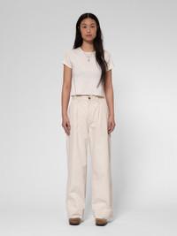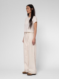 Pleated sailor pants with a high waist and wide leg, made from one of our finest twills. Size & Fit Model is wearing size: W28'' Model's height: 175 cm / 5’8” Details - Organic cotton - Rigid twill - Matching thread at seams - Turtoise button - Zip fly - Four pockets - Woven patch - Regular fit - High waist - Wide leg - Wide leg opening 100% Cotton Made in TN Pleated sailor pants with a high waist and wide leg, made from one of our finest twills. Suki boasts a wide-leg silhouette, pleated front, and generous hem, creating an artful blend of sailor and workwear aesthetics. Crafted from robust ecru twill, treated with a gentle brushing, these pants possess both body and an exceptionally smooth hand. Pair Suki with Bibbi for the complete look.