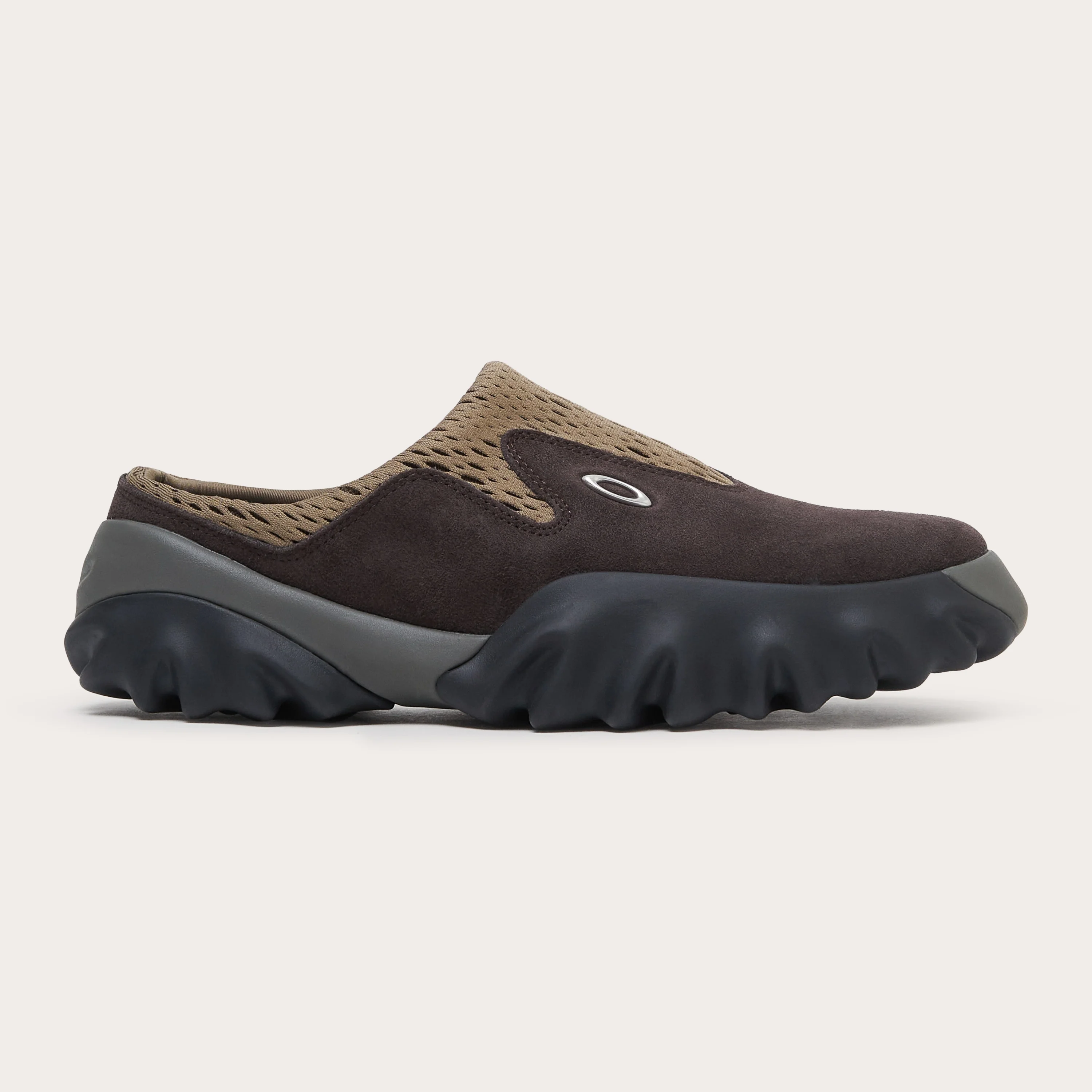 CODE: FOF100710-32L Building off the original Oakley® Chop Saw, this metamorphosis celebrates evolution with its mule version and diverse material compositions. Displaying the same fierce visual traits from the original shoe design, the Chop Saw Mule is a symbol of chiseling ease – no heel back, no problem. Featuring a unique padded neoprene collar allowing for non-isometric stretch that conforms to contours, lush materials for the upper and a prominent jagged rubber sole, this is another manifestation of Oakley Factory Team’s non-conformism. Blending rich ganache and earthy brown tones, this Oakley Factory Team Chop Saw Mule delivers comfort with edge—built to disrupt, not blend in.This product is excluded by any promo-code or promotions. Material Composition - Upper Composition: 69% Calf Leather, 31% Polyester - Lining Composition: 100% Lycra - Outsole Composition: 50% EVA, 50% Rubber tread