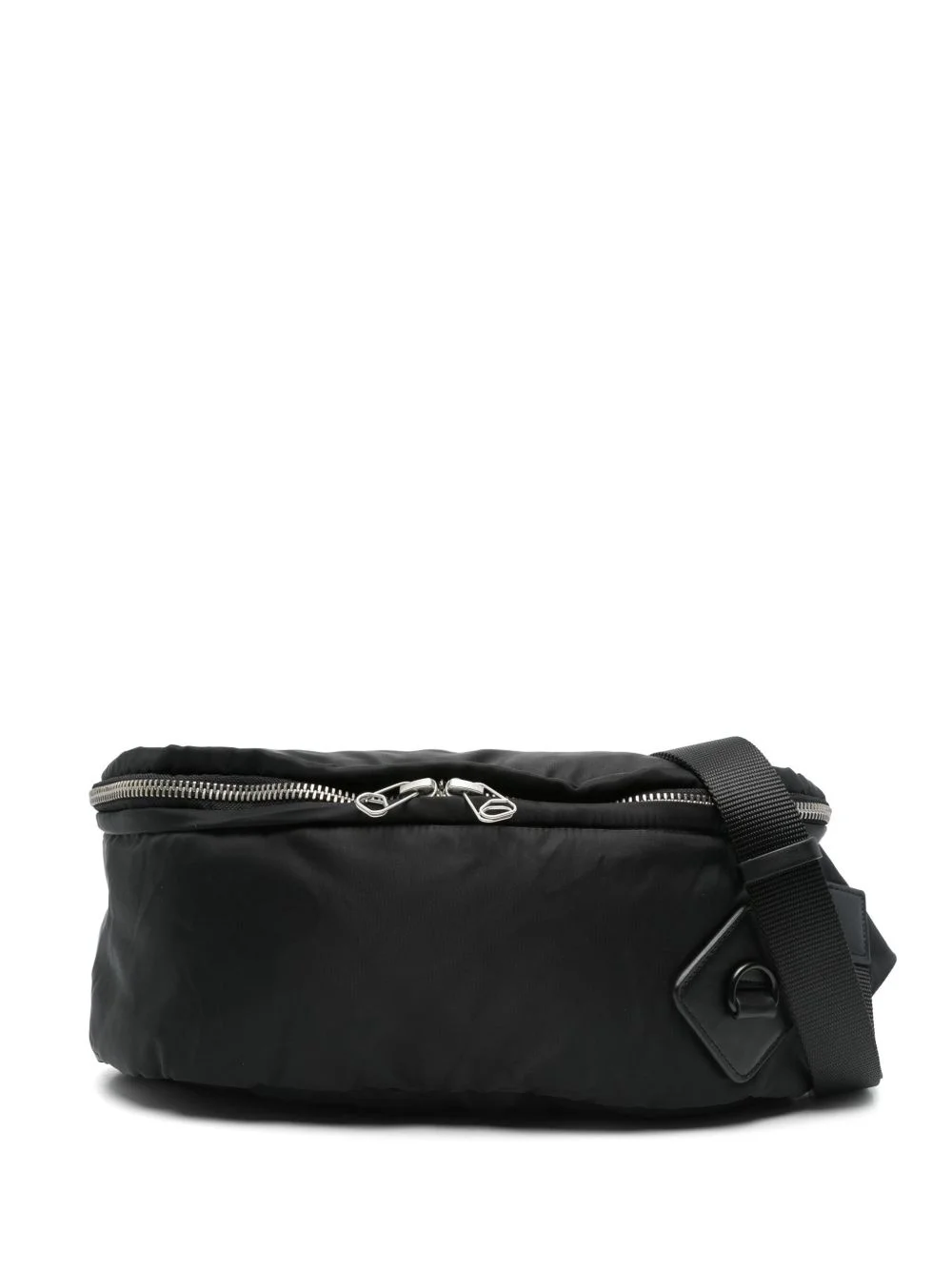 padded belt bag Highlights - Black - Two-way zip fastening - Adjustable waist strap - Internal slip pocket - D-ring findings Imported Composition Outer: Nylon 100% SIZE & FIT Model measurements Height 5 ft 11 in(1.8 m) Bust/Chest 31.49 in(80 cm) Hips 36.61 in(93 cm) Waist 24.4 in(62 cm) Measurement DEPTH 4.72 in(12 cm) HEIGHT 6.29 in(16 cm) STRAP 54.33 in(138 cm) WIDTH 13.77 in(35 cm)