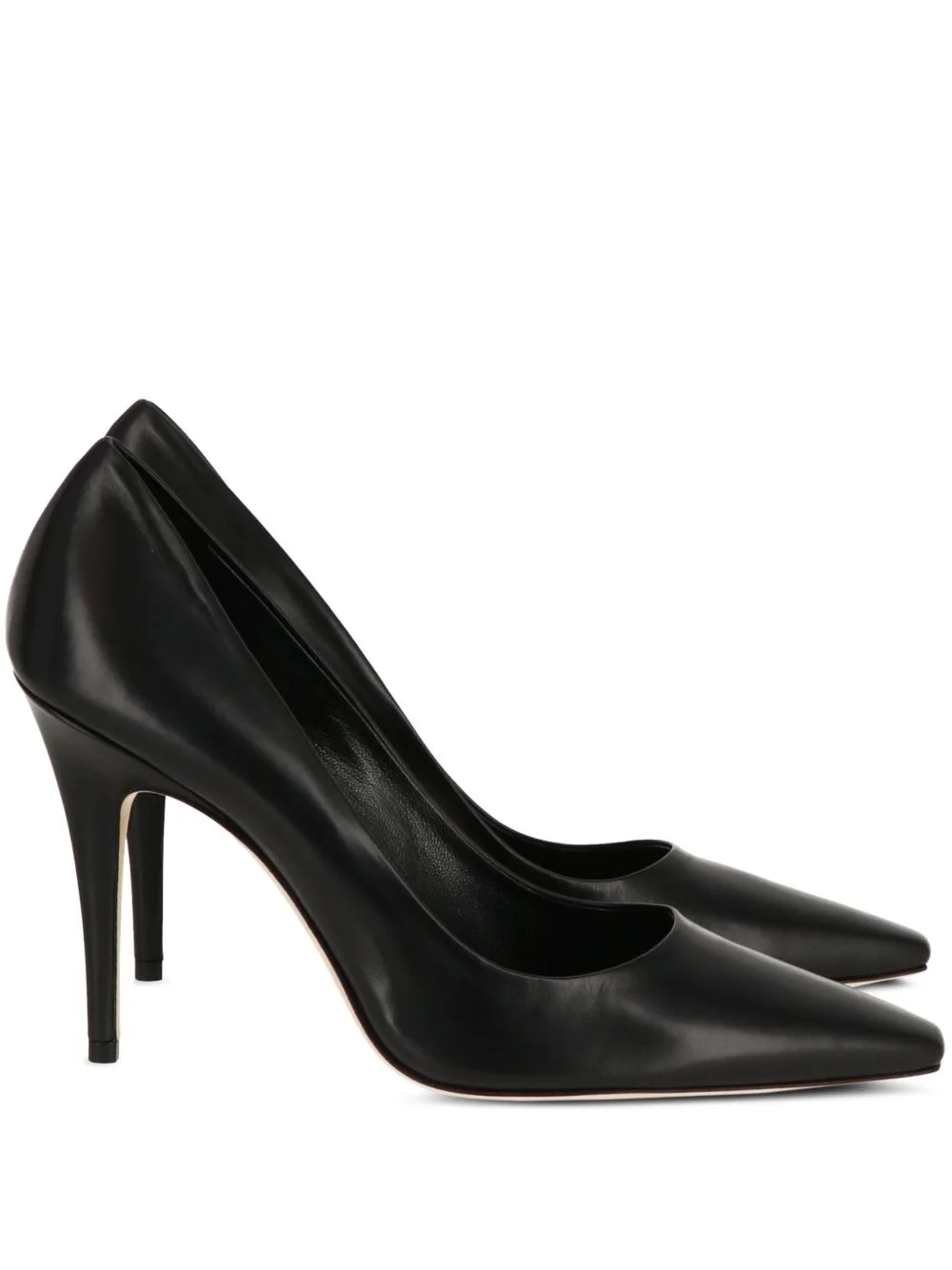 110mm Mary heeled pumps Highlights - Black - Slip-on style - Stiletto heel Made in Italy Composition Lining: Calf Leather 100% Outer: Silk 100% Sole: Calf Leather 100% SIZE & FIT Measurement HEEL 4.33 in(11 cm)