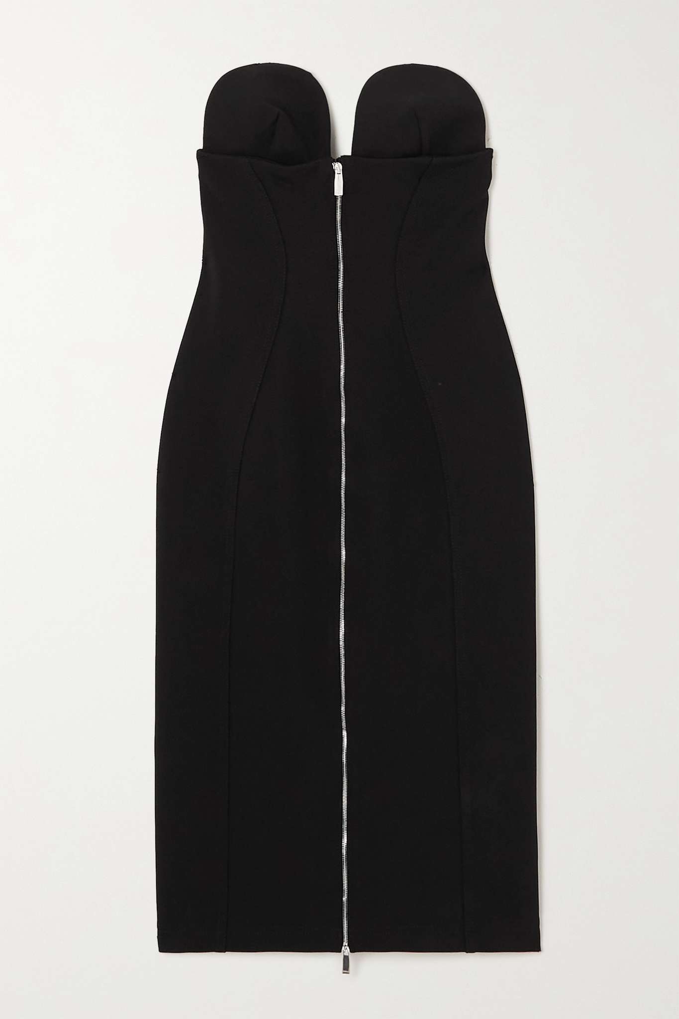 EDITORS'NOTES There's always an unexpected element to Off-White's designs - this 'Ablohland' midi dress has distinctly shaped, molded cups. It's made from stretch-crepe that forms to your figure and has contouring raised seams. You can adjust the zipper to create a split hem and attach the optional straps to keep it perfectly in place. SIZE & FIT - Fits true to size, however those who are between sizes should take the larger size - Designed for a very close fit - Internal bust support - Detachable shoulder straps - Mid-weight, slightly stretchy fabric - Model is 177cm/ 5'10" and is wearing an IT 40 DETAILS & CARE - Black stretch-crepe - Zip fastening along front - 86% viscose, 10% polyamide, 4% elastane - Dry clean