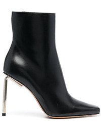 Allen 100mm leather ankle boots Imagined in a sleek black hue, these Allen ankle boots from Off-White showcase the brand's innovative approach to design through the structural square toe and their Allen key-shaped heel, hence the name. Highlights - Black - Calf leather - Logo-engraved silver-tone hardware - Square toe - Side zip fastening - 100mm stiletto heel - Branded leather insole - Leather outsole Made in Italy Composition Lining: Calf Leather 100% Sole: Calf Leather 100% Outer: Calf Leather 100% SIZE & FIT Measurement CIRCUMFERENCE 8.66 in(22 cm) HEEL 3.93 in(10 cm) HEIGHT 5.51 in(14 cm) Sole height 0.19 in(0.5 cm)