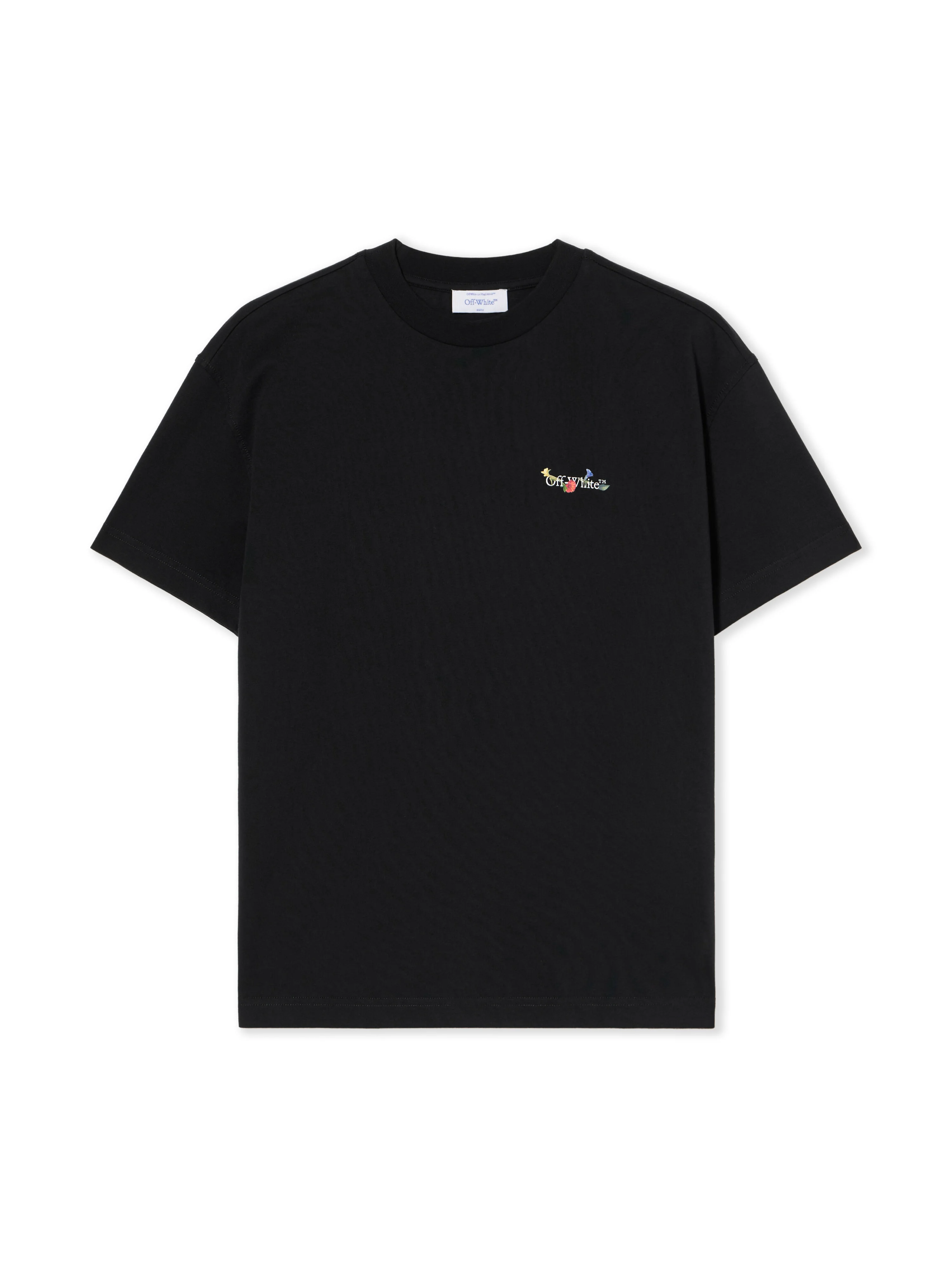 Revel in urban elegance with the Arrow Glass Flower Regular T-Shirt, meticulously crafted from premium cotton for a sophisticated streetwear statement. - Constructed from 100% cotton for superior comfort - Features a front minimalistic logo embroidery - Back adorned with a distinctive floral motif and iconic arrow graphic - Short sleeves with a classic crew neckline - Relaxed fit for versatile styling - Signature Off-White™ aesthetic DETAILS - Material: 100% Cotton, Rib Details: 5% Elastane 95% Cotton - Code: OWAA089F25JER0011001