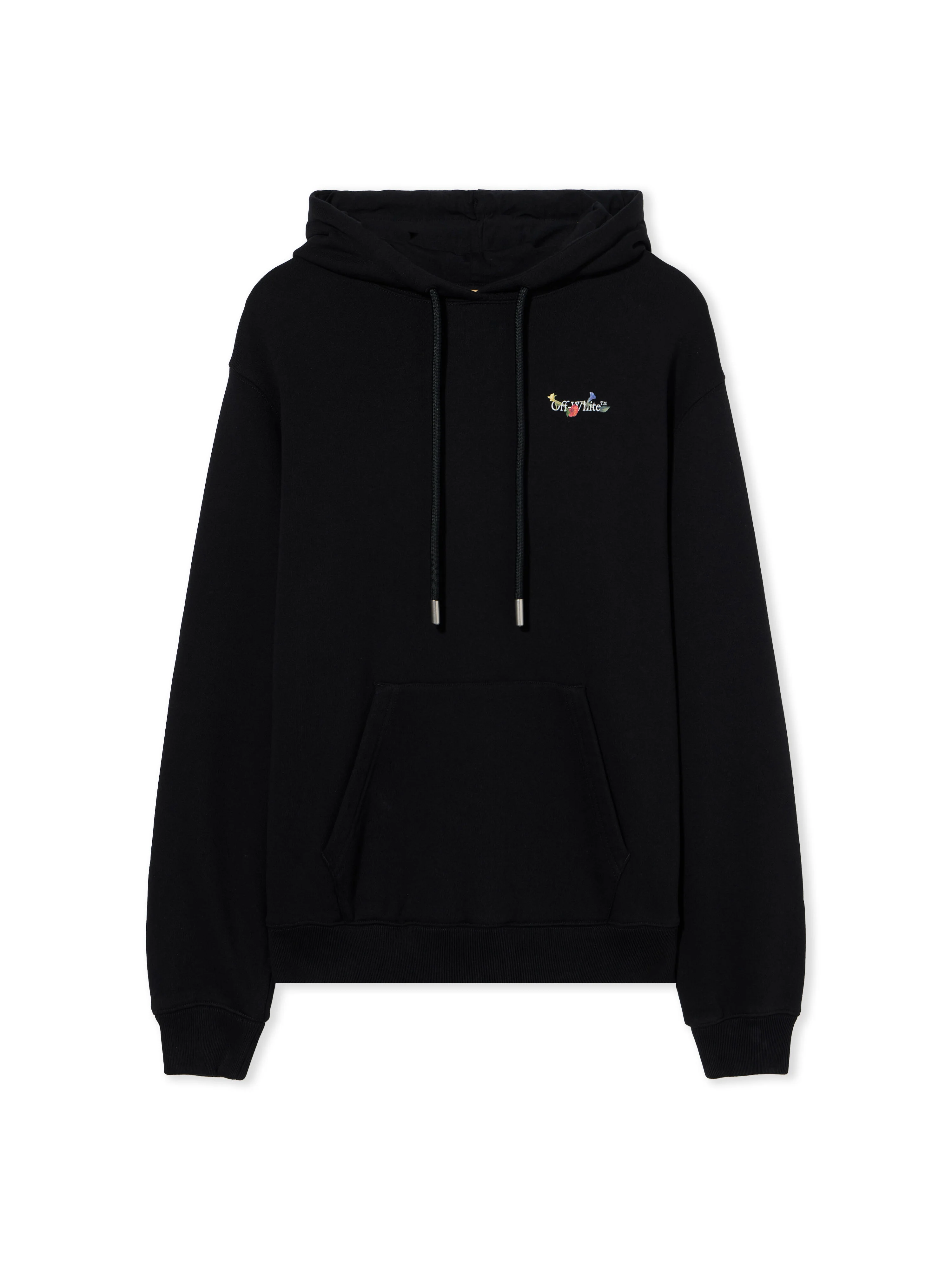 This Off-White™ hoodie merges streetwear aesthetics with luxury details, featuring intricate floral motifs on the iconic arrow design. - Crafted from premium cotton for durability - Signature arrow motif with floral accents - Adjustable drawstring hood - Front kangaroo pocket for functionality - Ribbed cuffs and hem - Off-White™ logo detail at chest - Relaxed fit for versatile styling - Made in Italy DETAILS - Material: 100% Cotton, Rib Details: 5% Elastane 95% Cotton - Code: OWBB064F25FLE0011001