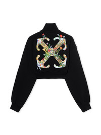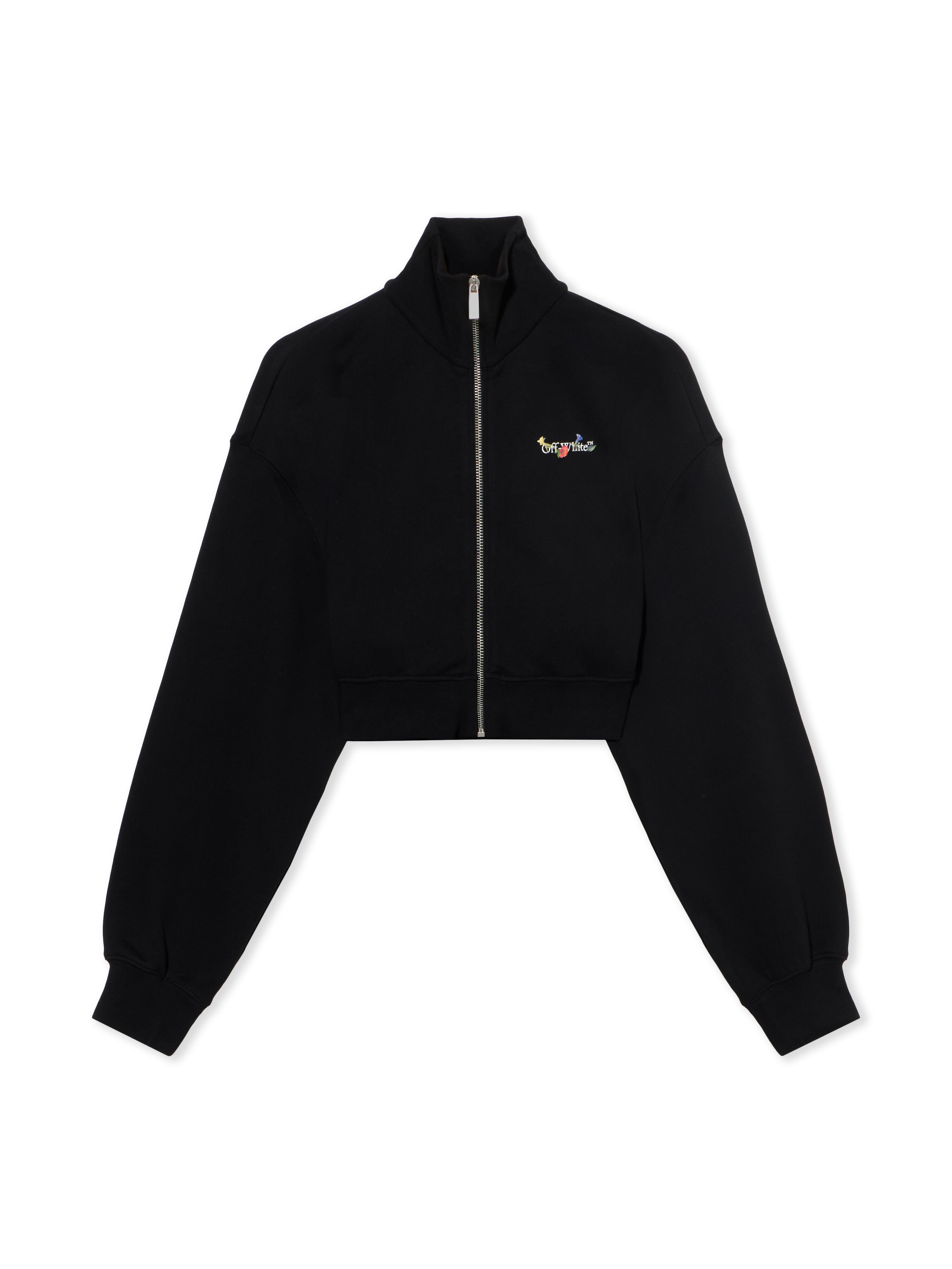Cotton-blend crop jacket with zip fastening and floral motif. - High collar design - Full zip fastening - Long sleeves - Signature arrow floral motif at back - Cropped silhouette - Ribbed cuffs - Brand logo at chest DETAILS - Code: OWBE006F25FLE0021001