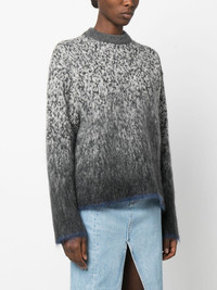 Arrow intarsia jumper OFF-White gives a refresh to the classic jumper by adding its signature Arrows motif on the rear. It's crafted from a mohair-wool blend and features a crew neck. Highlights - Grey/white/blue - Mohair blend - Signature arrows motif - Crew neck - Long sleeves - Straight hem Made in Italy Composition Mohair 50%, Polyamide 32%, Wool 18%