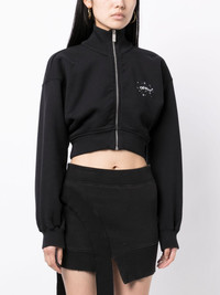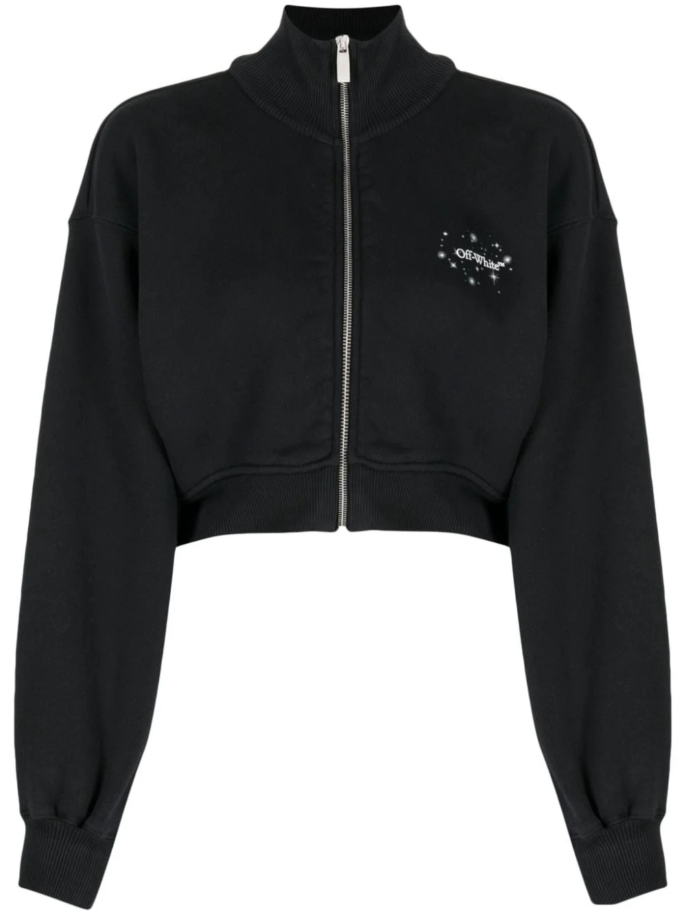 Arrows cropped sweatshirt Cut from cotton to a cropped silhouette, Off-White's sweatshirt is printed with the ubiquitous Arrows motif in star detailing. Highlights - Black - Cotton - Signature arrows motif - Logo print at the chest - Logo print to the rear - Funnel neck - Front zip fastening - Drop shoulder - Long sleeves - Cropped Imported Composition Outer: Cotton 100% Cotton 95%, Elastane 5% SIZE & FIT Measurement SLEEVE LENGTH 20.86 in(53 cm) LENGTH 16.92 in(43 cm) Washing instructions Hand Wash