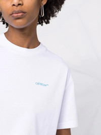 Arrows-print organic cotton T-shirt Since its founding in 2012, Off-White has revelled in creating motifs that can be recognised instantly. Adorning the back of this organic cotton T-shirt, the iconic logo is presented in a red-to-blue gradient. Imported Composition Organic Cotton 100% SIZE & FIT Model measurements Height 5 ft 11 in(1.8 m) Bust/Chest 31.49 in(80 cm) Hips 35.82 in(91 cm) Waist 24.8 in(63 cm) FittingInformation This piece fits true to size. We recommend you get your regular size Cut for a loose fit Made with a mid-weight fabric Washing instructions Machine Wash