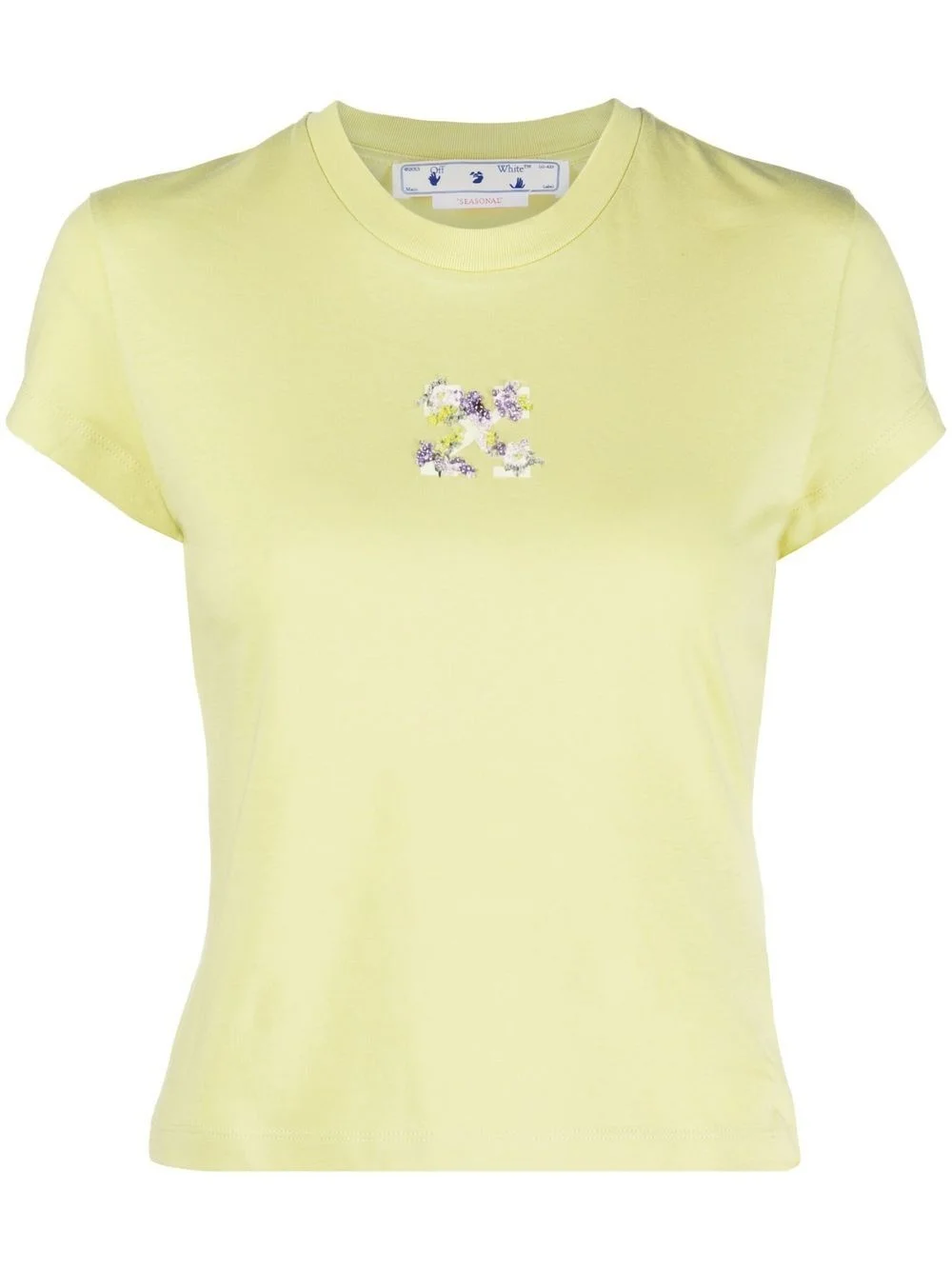 Arrows short-sleeve T-shirt Off-White's Arrows motif runs throughout the brand's collections. It's inspired by the idea of pointing to four corners at once. It features in floral-tone embroidery on this T-shirt as a contrast against the lime green background. Imported Composition Cotton 100% SIZE & FIT Model measurements Height 5 ft 10 in(1.78 m) Bust/Chest 30.31 in(77 cm) Hips 36.61 in(93 cm) Waist 24.8 in(63 cm) FittingInformation This piece fits true to size. We recommend you get your regular size Cut for a slim fit Made with a mid-weight fabric Washing instructions Hand Wash