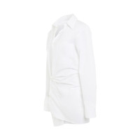 Be effortlessly stylish in this Poplin Twist Shirt Dress. Crafted from crisp white fabric, it features a twist detail at the neckline, a self-tie waist belt, and hidden side pockets for a polished look. Its soft handle is designed to keep you comfortable all day long. - Composition: 100% Cotton - Asymmetric design - Spread collar - Front button fastening - Long sleeves - Buttoned cuffs - Asymmetric hem SKU: OWDG005F23FAB0040101