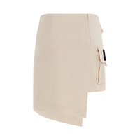 Off-White asymmetric wool mini skirt embodies the brand's directional design vision with its unique and contemporary silhouette. Crafted from neutral-coloured wool, this skirt offers a versatile and timeless addition to your wardrobe. The standout feature of this skirt is its asymmetric silhouette, which adds an edgy and unconventional touch to the design. The asymmetry creates visual interest and adds a modern and fashion-forward element to the garment. Elevating the skirt further is a utility-inspired flap pocket, showcasing Off-White's signature industrial detailing. This detail not only adds a utilitarian aesthetic but also serves as a nod to the brand's distinctive style and attention to unique embellishments. • Composition: Outer: Virgin Wool 100%. Lining: Viscose 53%, Cupro 47% • Asymmetric silhouette • Mini skirt • Flap pocket on the side • Industrial detailing SKU: OWCY001S23FAB0011700