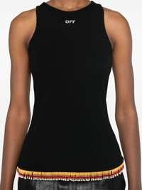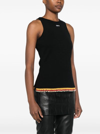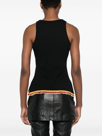 beaded tank top Highlights - Black - Cotton blend - Fine ribbed - Crew neck - Logo print to the front - Sleeveless - Bead detailing - Straight hem Imported Composition glass 100%, Cotton 95%, Elastane 5% SIZE & FIT Model measurements Height 5 ft 11 in(1.8 m) Bust/Chest 31.49 in(80 cm) Hips 36.61 in(93 cm) Waist 24.4 in(62 cm) FittingInformation Designed for a slim fit that sits just away from the body offering a close yet comfortable fit Made from a midweight stretch fabric, this piece offers elasticity and flexibility when worn Washing instructions Hand Wash