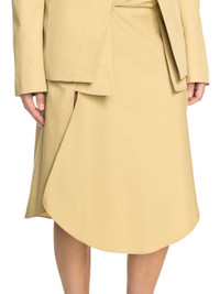 This 100% cotton asymmetric skirt features paneled detailing and an oversized waistband with double belt loops. Made in Italy. MATERIALS 100% Cotton FITTING JUNI WEARS SIZE 38 HEIGHT: 5' 7” (176 CM) BUST: 28” (73 CM) WAIST: 23“ (60 CM) HIPS: 35” (89 CM)