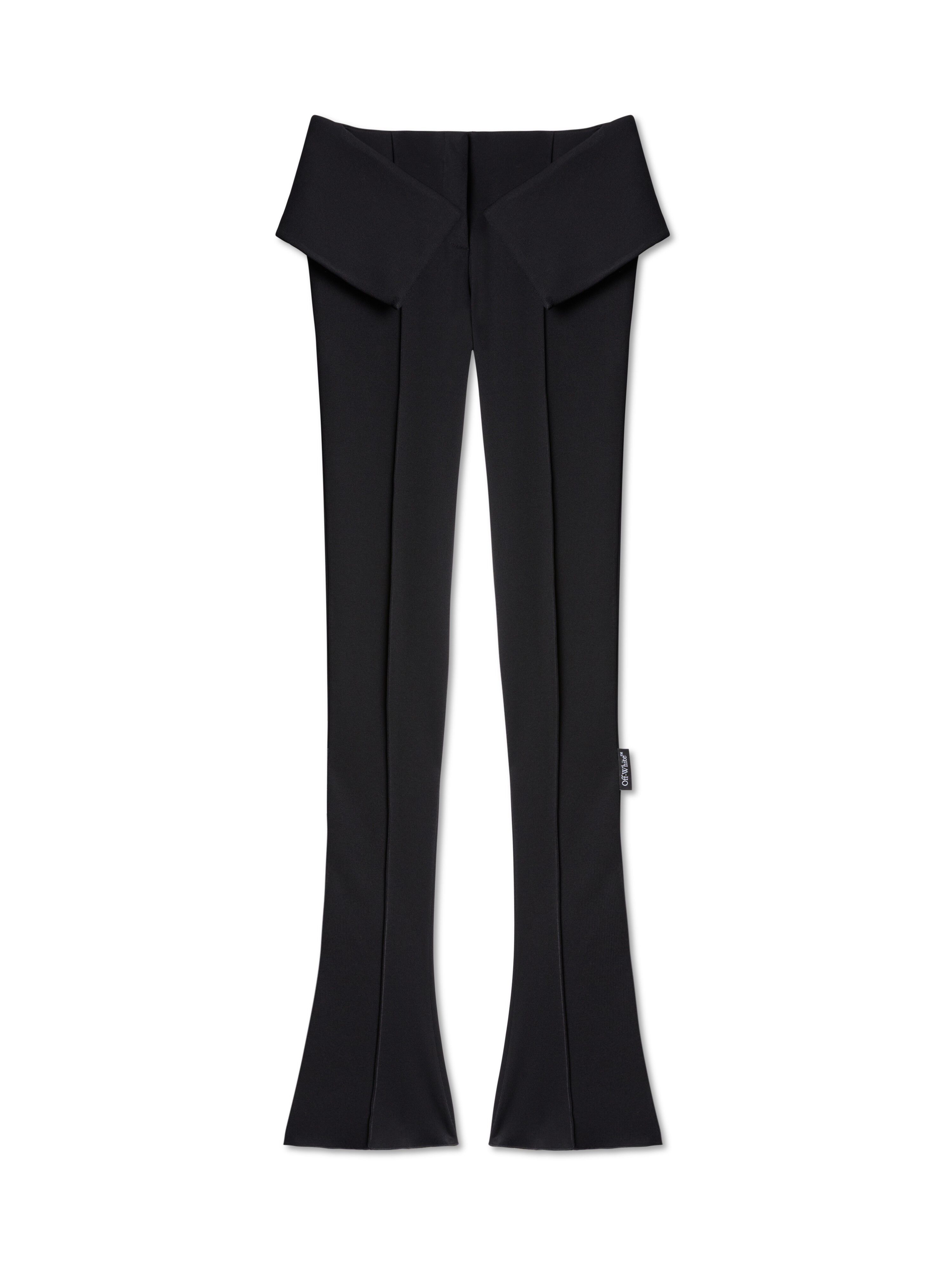 These Off-White™ pants redefine elegance with a bold, avant-garde twist. Crafted in sleek black, the design features an innovative folded waistband that challenges conventional silhouettes, creating a statement look that is both experimental and sophisticated. The tailored fit flows effortlessly into slightly flared legs, adding a touch of urban edge to the minimalist design. A discreet Off-White™ tag on the side nods to the brand’s iconic industrial aesthetic, while the high-quality fabric ensures comfort and durability. Perfect for those who dare to transcend traditional fashion boundaries, these pants are a testament to Off-White™’s commitment to fusing luxury with streetwear and art with pop culture. DETAILS - Code: OWCA18QZ25JER0011000
