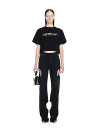 Part of Wardrobe, the curated selection of Off-White™ staples, this cropped t-shirt has a crewneck collar and a relaxed fit. It features a classic logo across the chest. 100% cotton. MATERIALS 100% Cotton FITTING Model Lydia Celesta wears size S Height: 5’ 10" (178 cm) Chest: 30” (77 cm) Waist: 23” (58 cm)