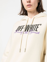 Big Logo Opposite-print hoodie Off-White presents new iterations of its iconic house codes season after season. Take this cotton hoodie, for example, where the brand's lettering appears in an oversized proportion and is contrasted with a calligraphed "Exactly the Opposite" motif for added versatility. Highlights - Cream white/black/lilac purple - Organic cotton - Embroidered logo - Drawstring hood - Long sleeves - Elasticated cuffs - Elasticated hem Imported Composition Cotton 100% SIZE & FIT Model measurements Height 5 ft 10 in(1.78 m) Bust/Chest 33.46 in(85 cm) Hips 36.22 in(92 cm) Waist 23.22 in(59 cm) FittingInformation This piece fits true to size. We recommend you get your regular size Cut for a loose fit Made with a mid-weight fabric Washing instructions Machine Wash