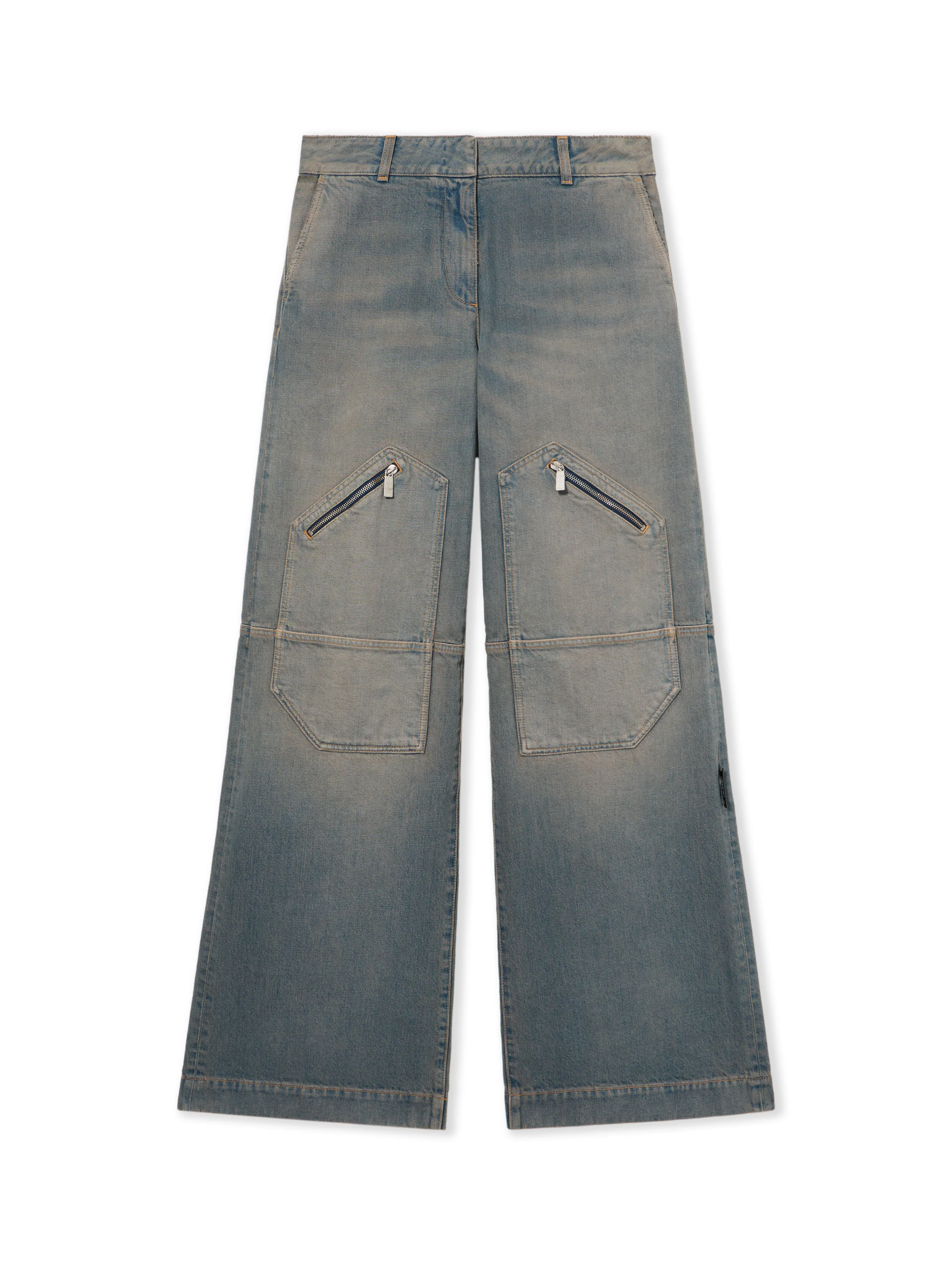 These Wide Leg Denim Pants feature oversized front pockets and a spacious fit, offering a modern utilitarian style. - Wide leg silhouette - Oversized front pockets - Spacious fit for comfort DETAILS - Fabric: 100% Cotton - Code: 2YB01NS26DEN001W286