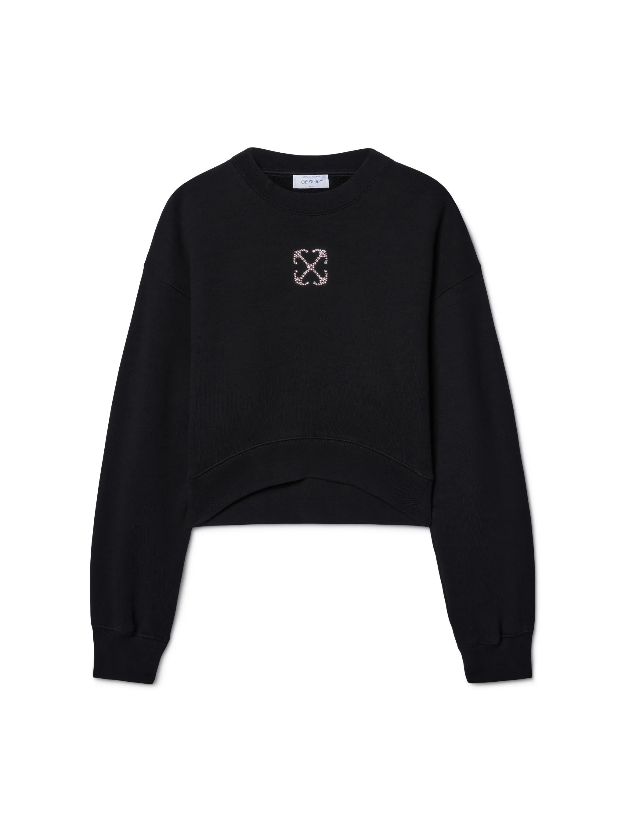 This 100% cotton crewneck sweatshirt features an embellished crystal arrow logo. Cropped fit. DETAILS - ZHENDAN WEARS SIZE S HEIGHT: 5' 7” (175 CM) BUST: 29” (74 CM) WAIST: 25“ (64 CM) HIPS: 33” (86 CM) - Materials:Cotton 100% - Code: OWBA079S25FLE0031072