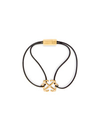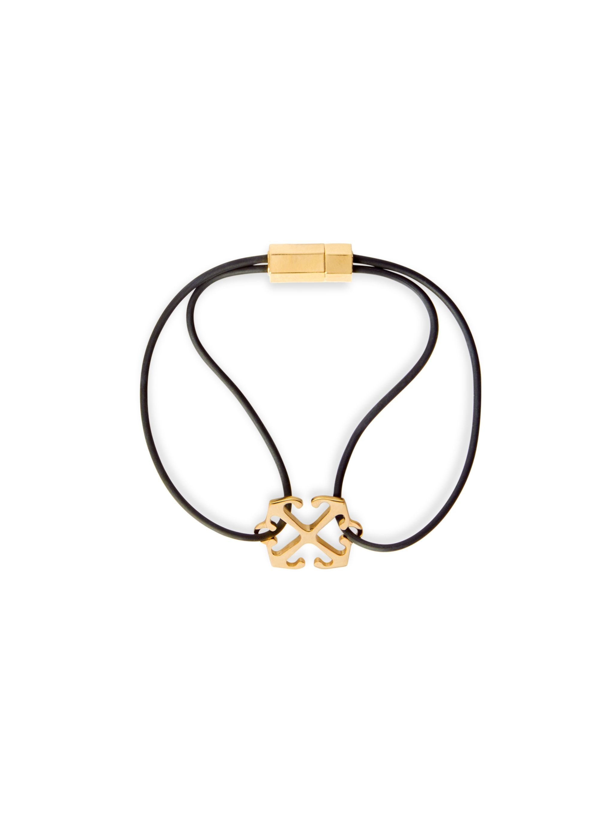 This rubber banded bracelet features a 100% brass arrow logo and closure with a gold finish. Made in Italy. MATERIALS 100% Rubber 100% Brass FITTING Height: 15 Height: 30 Depth: 5