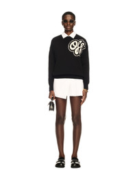This cashmere-blend crewneck sweater features a large split logo on the front that continues on the reverse. Made in Italy. MATERIALS 10% Cashmere 90% Cotton FITTING DIARA WEARS SIZE S HEIGHT: 6' (180 CM) BUST: 32” (82 CM) WAIST: 24“ (63 CM) HIPS: 35” (90 CM)