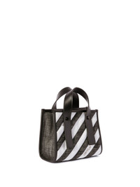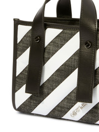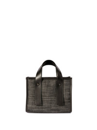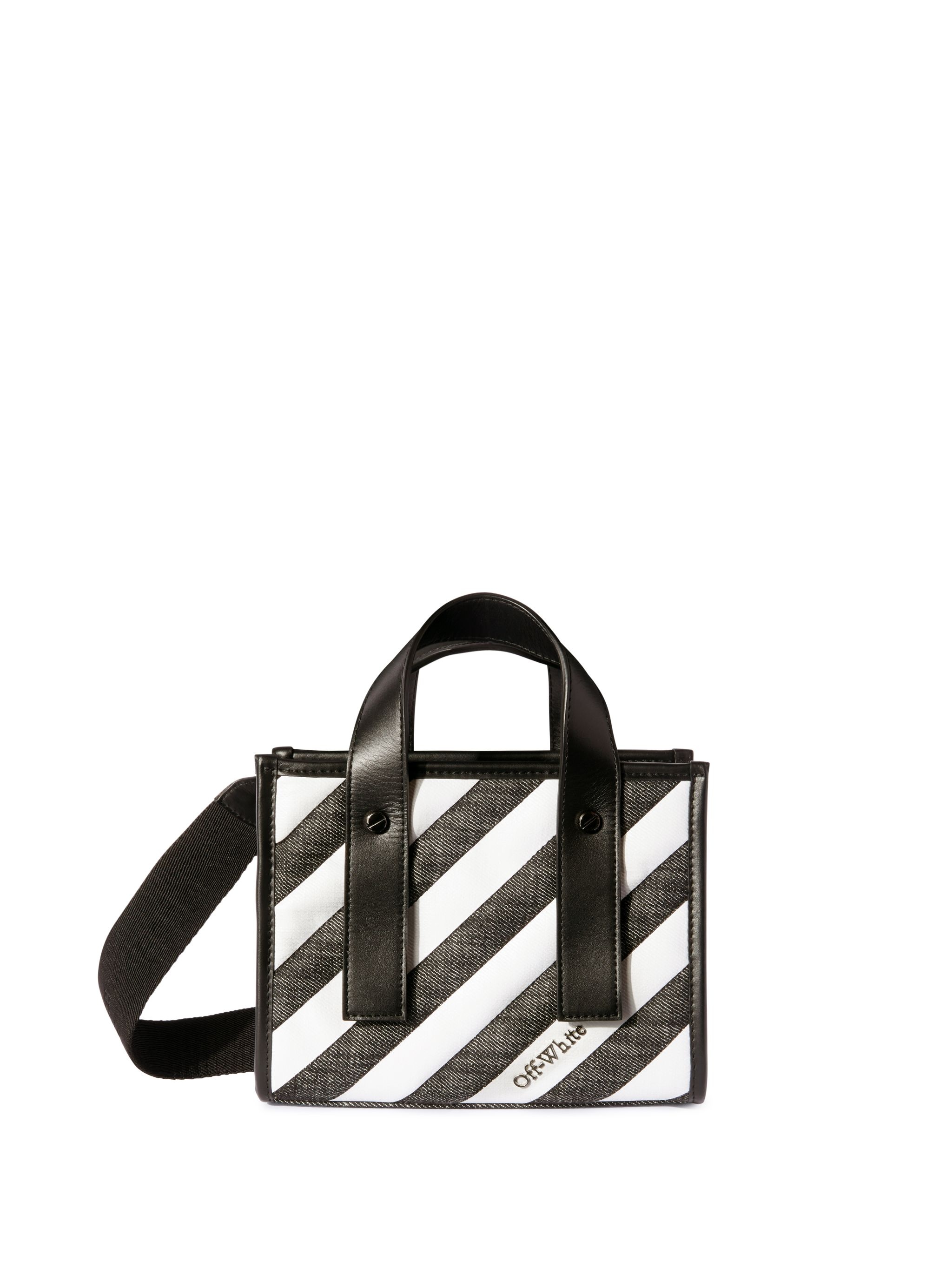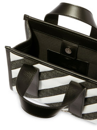 This small tote bag is crafted from 100% quilted cotton with diagonal stripes and features leather handles and a woven strap. Made in Italy. MATERIALS Lining: 5% Acrylic Outer: 100% Calf Leather Lining: 95% Cotton Outer: 100% Cotton FITTING Weight: 450 g Measurements: Height 17 cm; Width 21,5 cm; Depth 9,5 cm