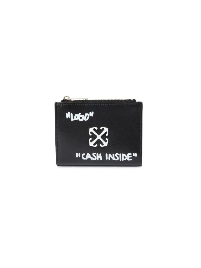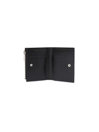 This zipped Jitney bifold wallet is crafted from leather with a signature quote and matching arrow logo. Made in Italy. MATERIALS Lining: 27% Polyamide Lining: 68% Cotton Outer: 100% Calf Leather Lining: 5% Acrylic Lining: 100% Viscose FITTING Weight: 60 g Measurements: Height 12 cm; Width 9 cm; Depth 2,5 cm