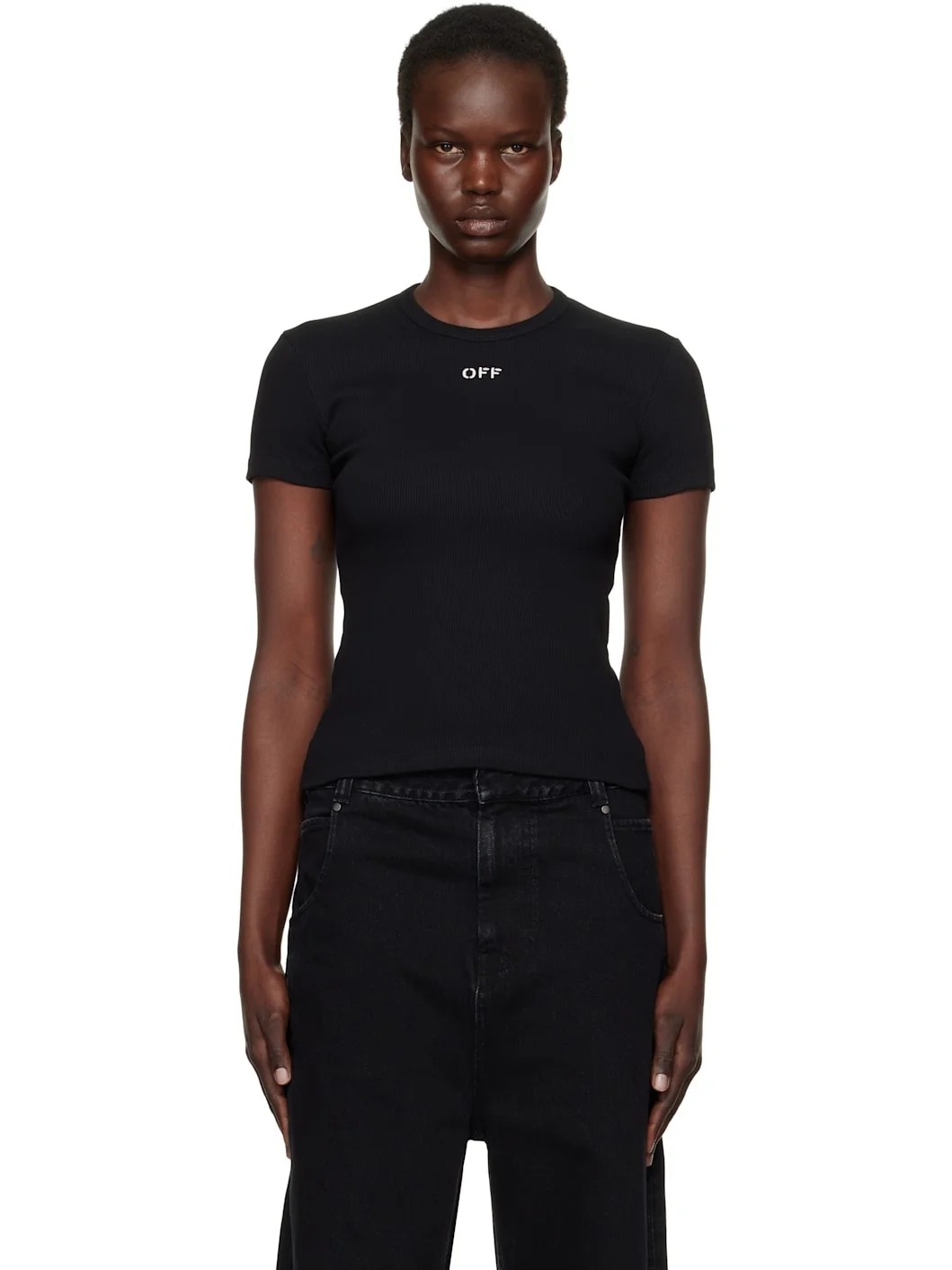 Stretch cotton ribbed jersey T-shirt. · Crewneck · Logo embroidered at chest Supplier color: Black/White 98% cotton, 2% elastane. Made in Italy 251607F110016
