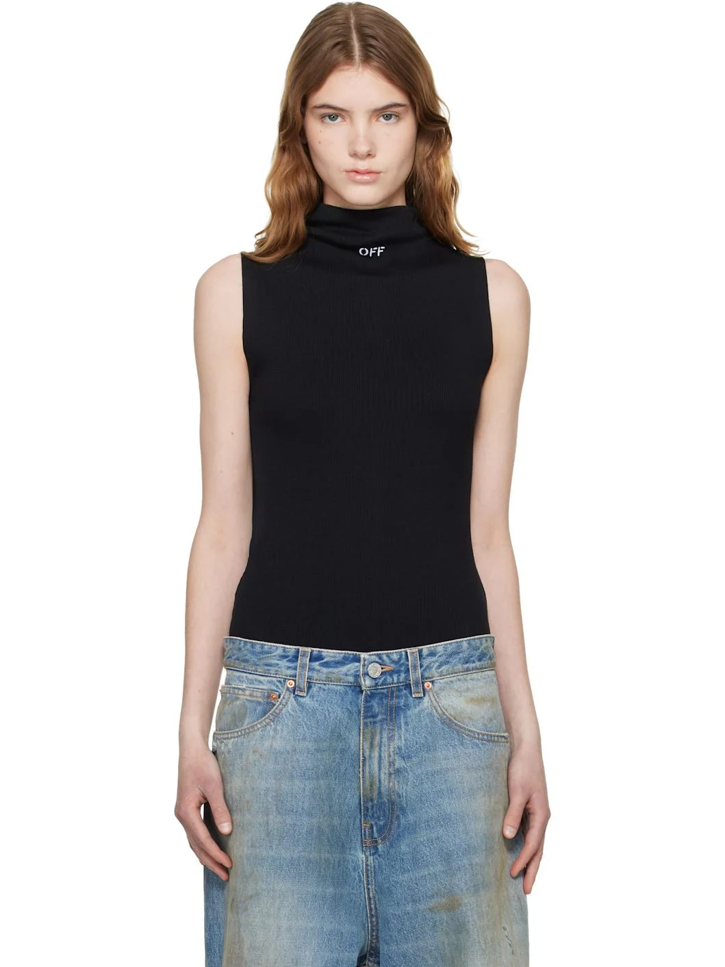Cotton ribbed jersey bodysuit. · Mock neck · Logo embroidered at chest · Press-stud fastening at bottom · Concealed zip closure at back Supplier color: Black/White Body: 100% cotton. Trim: 99% cotton, 1% elastane. Made in Portugal 261607F358000