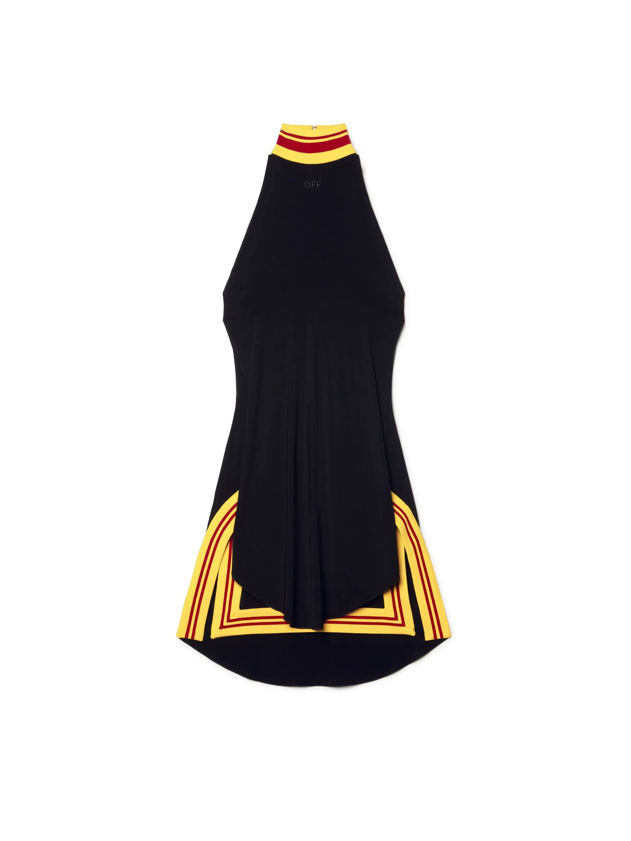 This sleeveless mini dress features a high neck and layered hem with contrasting striped edging. Made in Italy. As seen in the Fall Winter 2024 Show entitled "Black by Popular Demand". MATERIALS Outer: 95% Viscose Outer: 5% Elastane FITTING DIARA WEARS SIZE 38 HEIGHT: 5’ 11” (180 CM) BUST: 32” (82 CM) WAIST: 25” (63 CM) HIPS: 35” (90 CM)