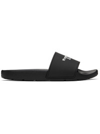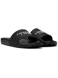 Rubber sandals in black. · Open toe · Text bonded at vamp · Logo embossed at molded footbed · Treaded rubber sole Supplier color: Black/White Rubber. Made in Italy 251607F124000