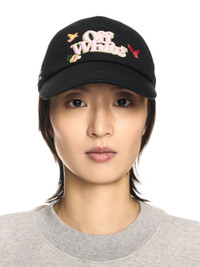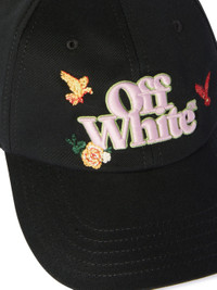 This 100% cotton baseball cap features multiple embroidered logos with birds and florals and a small arrow logo on the reverse. Made in Italy. DETAILS - Materials:Cotton 100% - Code: OWLA017S25FAB004103C