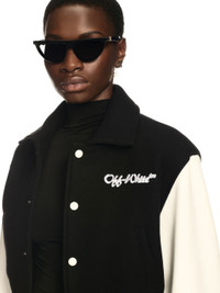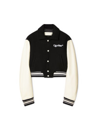This varsity jacket is crafted from a wool blend with 100% leather sleeves and features a small embroidered logo on the front and larger version on the reverse. Cropped fit. MATERIALS 100% Leather 75% Virgin Wool 25% Polyamide FITTING DIARA WEARS SIZE 38 HEIGHT: 6' (180 CM) BUST: 32” (82 CM) WAIST: 24“ (63 CM) HIPS: 35” (90 CM)