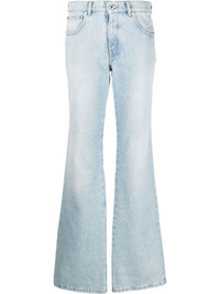 Bleach Baby baggy flared jeans Designed in a light blue hue, these flared baggy jeans from Off-White speak to the label's laidback aesthetic. Made in Italy Composition Lining: Polyester 65%, Cotton 35% Outer: Cotton 100% SIZE & FIT Model measurements Height 5 ft 9 in(1.76 m) Bust/Chest 33.46 in(85 cm) Hips 37.79 in(96 cm) Waist 25.59 in(65 cm) Washing instructions Machine Wash