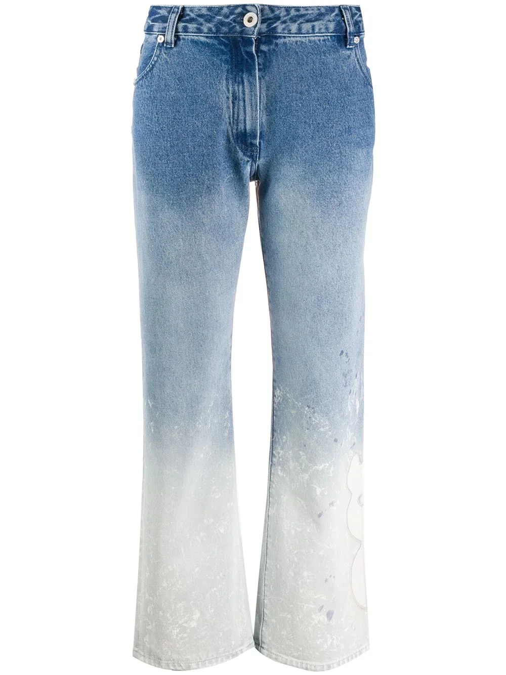 bleach effect straight jeans Fashion changes, jeans are eternal. Case on point: these washed blue and white cotton bleach effect straight jeans from Off-White. It's time to make a day to remember. Featuring belt loops, a front button fastening, front pockets, back pockets, distressed effects and a slightly cropped style. Made in Italy Composition Outer: Cotton 100% Lining: Cotton 100% SIZE & FIT Model measurements Height 5 ft 9 in(1.75 m) Bust/Chest 34.64 in(88 cm) Hips 35.03 in(89 cm) Waist 24.8 in(63 cm) FittingInformation This piece fits true to size. We recommend you get your regular size Designed to be fitted at the waist and through the thigh, loose from the knee Made with a mid-weight non-stretch fabric Washing instructions Hand Wash