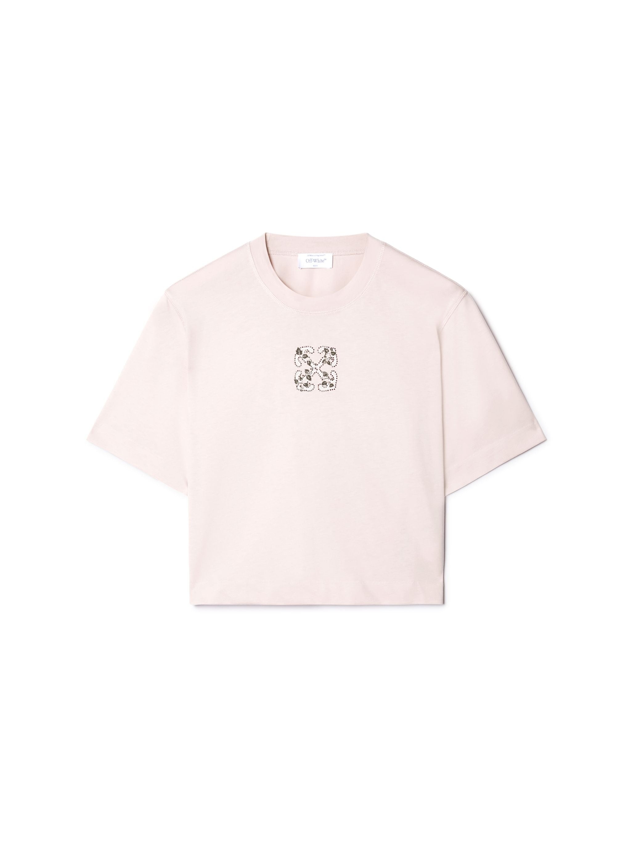 The arrows logo is reconstructed from intertwined leaves and vines on this cropped, oversized t-shirt. 100% cotton. MATERIALS 100% Cotton FITTING Model Diara Wade wears size S Height: 5’ 11" (180 cm) Chest: 32” (81 cm) Waist: 24” (62 cm)