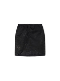 black virgin wool twill weave layered design crystal embellishment pleat detailing logo-jacquard lining scallop hem thigh-length concealed rear zip fastening MATERIALS Outer: 100% Virgin Wool Lining: 100% Viscose FITTING Bust 81cm Height 178cm Hips 93cm Waist 59cm