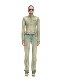Part of the SS25 "DUTY FREE" runway collection, these low-rise jeans are crafted from 100% cotton denim with a dirty wash. They feature cross-over seam detailing on the front and decorative fraying at the waist. Made in Italy. DETAILS - HANNAH WEARS SIZE 26 HEIGHT: 5' 9" (175 CM) BUST: 32” (82 CM) WAIST: 23“ (60 CM) HIPS: 34” (86 CM) - Cotton 100% - Code: OWYB01GZ25DEN0014100