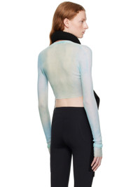 Semi-sheer rib knit nylon- and polyester-blend cardigan. Tie-dye pattern throughout. · V-neck · Button closure · Logo embroidered at chest · Cropped hem Supplier color: Light blue 70% polyamide, 30% polyester. Made in Italy 231607F095006