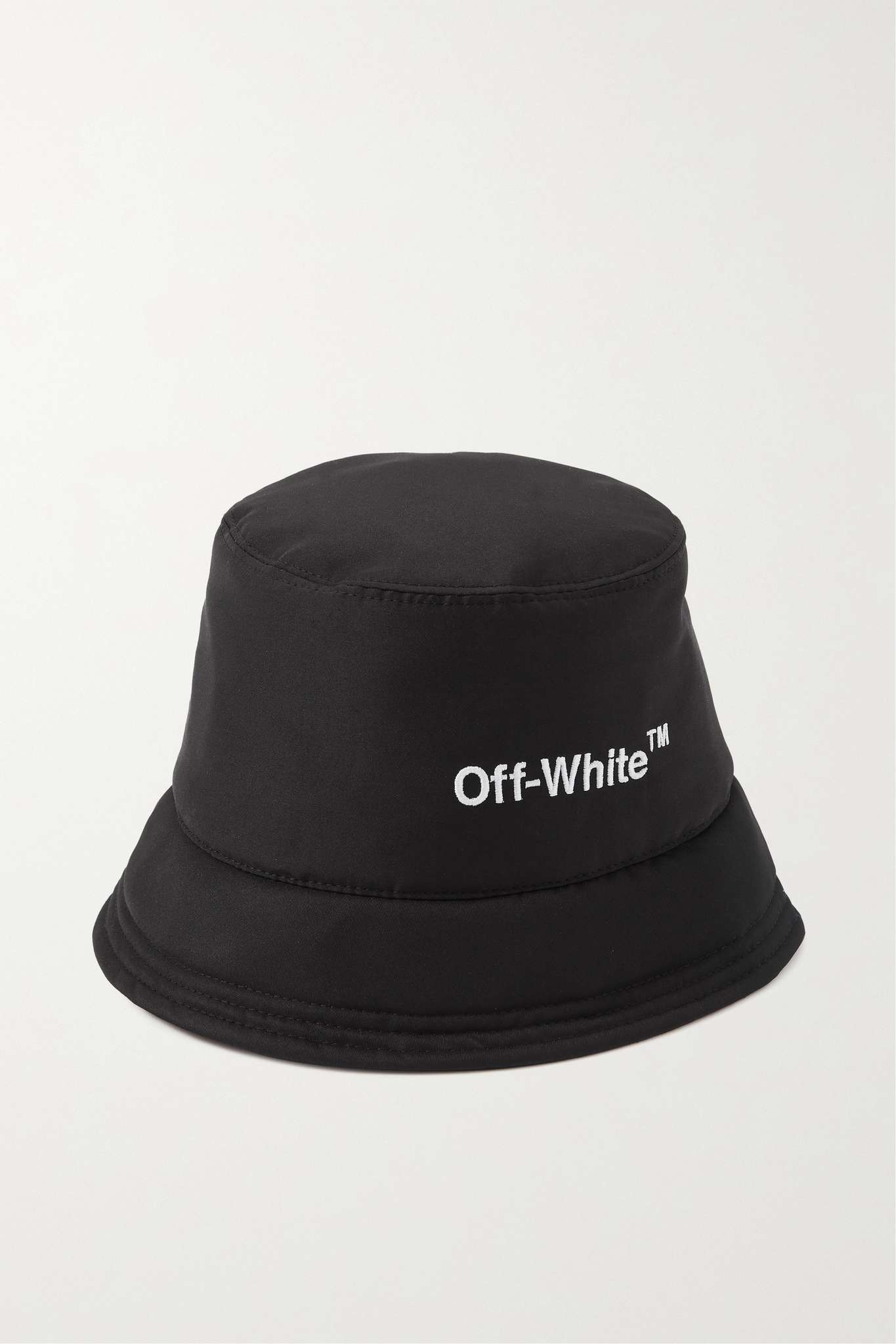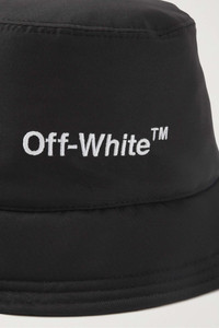 EDITORS'NOTES Off-White's bucket hat is simply embroidered with the brand's logo in the label's favorite 'Helvetica' font. It's made from smooth black shell and has a minimal profile. SIZE & FIT This item’s measurements are: - Brim Depth: 6cm / 2.4in - Circumference: 60cm / 23.6in DETAILS & CARE - Black and white shell - 100% polyester
