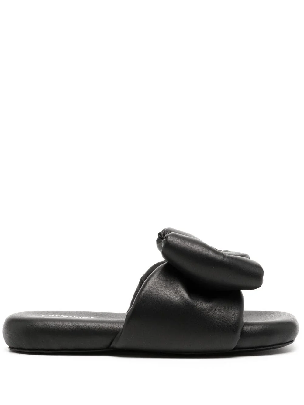 bow-detail padded slippers Highlights - Black - Leather - Padded design - Bow detailing - Open toe - Single toe strap - Slip-on style - Flat sole - Branded insole Made in Italy Composition Outer: Leather 100% Lining: Leather 100% Sole: Leather 100% SIZE & FIT Measurement Sole height 1.18 in(3 cm)