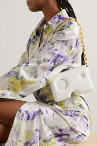 EDITORS'NOTES Off-White's 'Burrow 20' bag has a compact, sculptural shape and circular cutouts inspired by meteor showers. This version has been crafted in Italy from soft white leather and has a gold-tone chain strap. SIZE & FIT This item’s measurements are: - Handle Drop: 60cm / 23.6in - Depth: 5.5cm / 2.2in - Height: 12cm / 4.7in - Width: 20cm / 7.9in DETAILS & CARE - White leather (Lamb) - Zip fastening along top - Comes with dust bag - Weighs approximately 2.2lbs/ 1kg