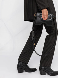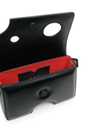 Black leather Burrow-22 crossbody bag from OFF-WHITE featuring signature Meteor cut-out detailing, curve-edge body, logo print to the rear, foldover top with magnetic fastening, adjustable shoulder strap and internal card slot. Highlights - Black - Leather - Signature meteor cut-out detailing - Curve-edge body - Logo print to the rear - Foldover top with magnetic fastening - Adjustable shoulder strap - Internal card slot Made in Italy Composition outer: Leather 100% Product measurements for size: One Size Depth: 8 cm (3.1 in) Height: 14 cm (5.5 in) Strap: 50 cm (19.7 in) Width: 21 cm (8.3 in)