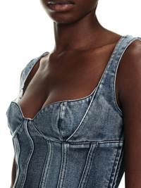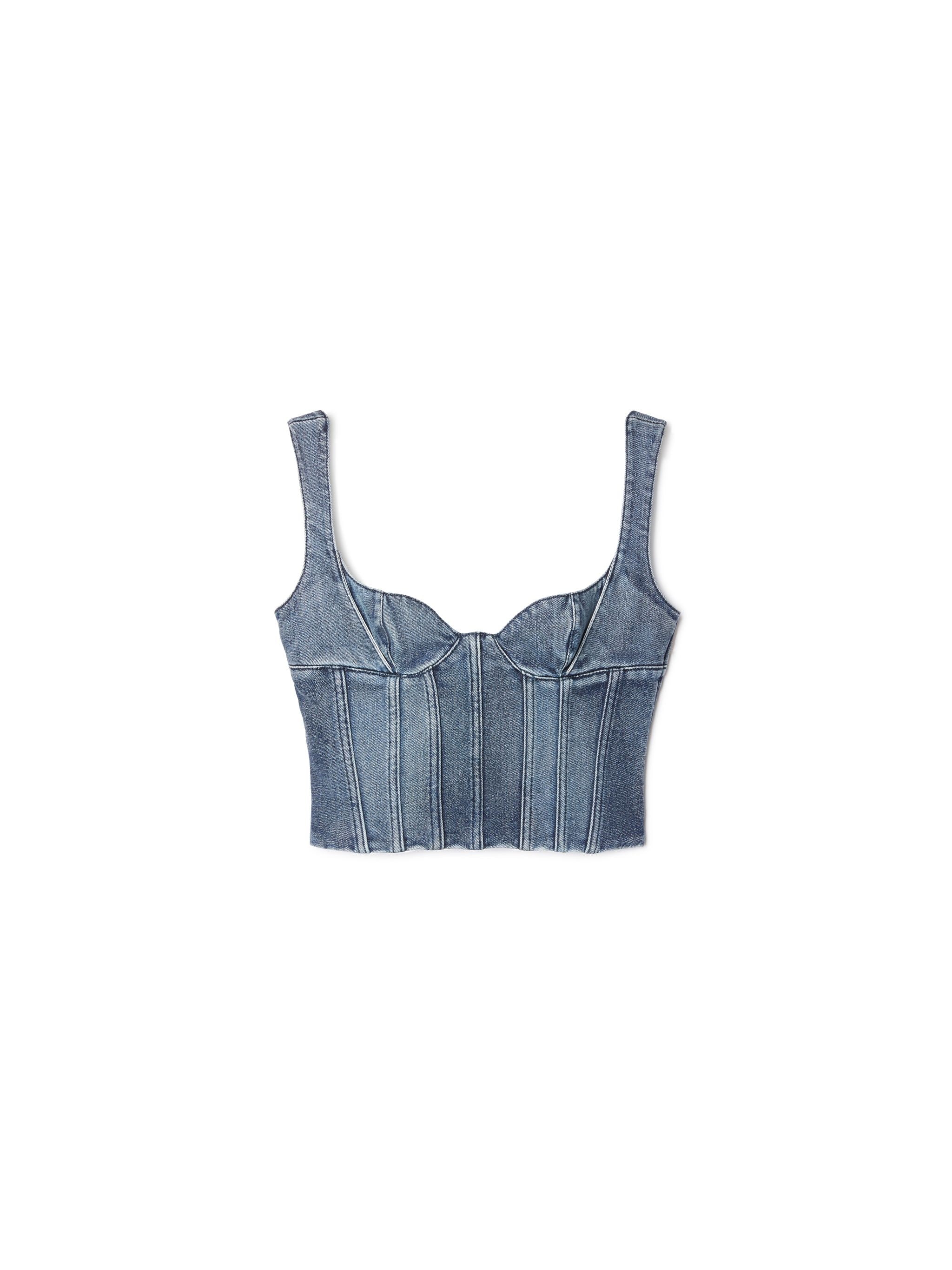 This fitted bustier top is crafted from 100% denim cotton and is constructed with multiple fitted panels. Made in Italy. MATERIALS 100% Cotton FITTING Model Diara Wade wears size 40 Height: 5’ 11" (180 cm) Chest: 32” (81 cm) Waist: 24” (62 cm)