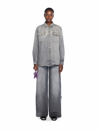 The Ink Arrow Denim Shirt Jacket embodies urban sophistication, crafted from premium denim with signature graphic detailing. - Structured collar enhances the neckline - Front button fastening for versatile styling - Long sleeves with buttoned cuffs - Dual chest pockets with button closure - Signature ink arrow motif at the rear - Subtle distressed finish for a modern edge - Made in Italy DETAILS - Material: 100% Cotton - Code: OWYQ004F25DEN0021201