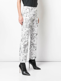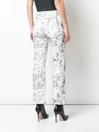 cartoon-printed straight jeans Superhero stories are not just for children. But the thing that differs, though, is that women have their cartoons printed all-over their white straight jeans. It's the Off-White story. Featuring an all-over print, a straight leg, a high waist, belt loops, a concealed front fastening, a five pocket design and a cropped length. Made In Italy Composition Cotton 100% Washing instructions Hand Wash