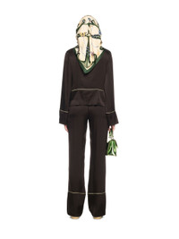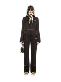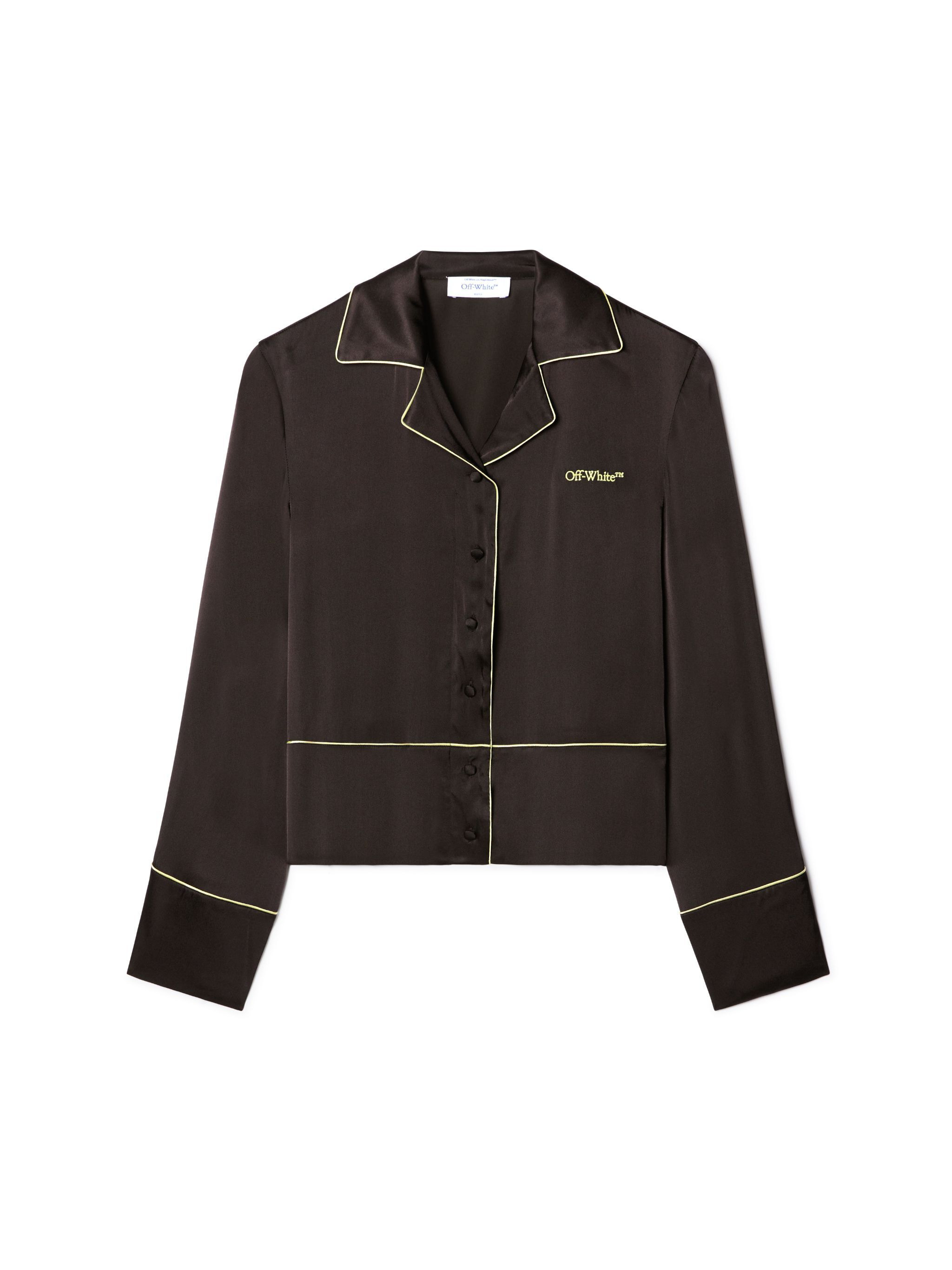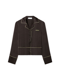 This silk-blend pajama shirt features a small embroidered bookish logo and contrasting piping. Made in Italy. DETAILS - JUNI WEARS SIZE 38 HEIGHT: 5' 7” (176 CM) BUST: 28” (73 CM) WAIST: 23“ (60 CM) HIPS: 35” (89 CM) - Materials:Silk 25%, Acetate 75% - Code: OWGE028S25FAB0016G14